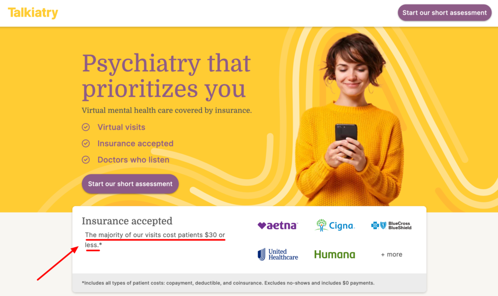 A key part of Talkiatry’s business model is providing care that is covered by major insurance providers, which makes it more affordable for many patients.